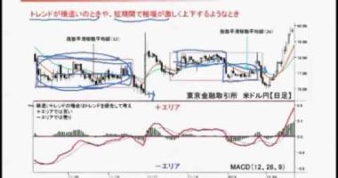 MACDがプラスの場合は、相場は上昇傾向にある。MACDの値は価格の変化するスピード計のようなもの。MACDヒストグラムは加速度的なものをあらわしている…
