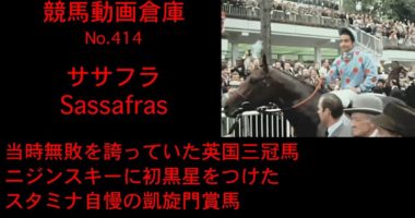当時無敗を誇っていた英国三冠馬ニジンスキーに初黒星をつけたスタミナ自慢の凱旋門賞馬馬名:ササフラ Sassafrasレース映像:1970年00:00 1…