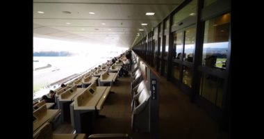 説明 東京競馬場の馬主席に招待されました。2018.11.3。座席の前にはガラスはなく屋外です。座席の後ろの室内空間には、馬券売り場、フロアーの共有座席…
