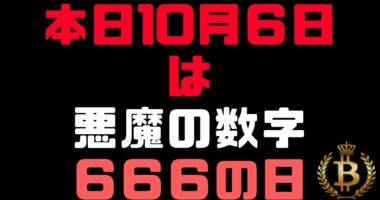 10月6日は【666】の日ビットコイン大暴騰!大暴落!注意!【666の日、何かが起こるかも】本日は10/6です。ただ6がつく日ではございません。。。20…