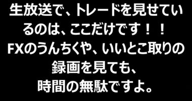 生放送で、トレードを見せているのは、ここだけです!!FXのうんちくや、いいとこ取りの録画を見ても、時間の無駄ですよ。生ライブトレードを見ながらロジックを…