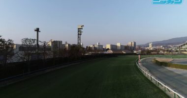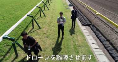 JRAの許可を得て、「桜花賞」が行われる阪神競馬場の上空をドローンで撮影。これは日刊スポーツ競馬面の「哲三ビジョン」という企画で、騎手目線で撮影したコー…