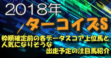ちゃんねるアキトでございます。この動画は2018年ターコイズすーてくすの枠順確定前の項目別データスコアと人気になりそうな有力馬の紹介をしています。新しく…