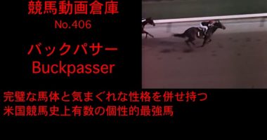 完璧な馬体と気まぐれな性格を併せ持つ米国競馬史上有数の個性的最強馬馬名:バックパサー Buckpasserレース映像:1965年、1966年、1967年…