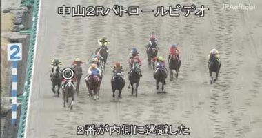【中山競馬・パトロールビデオ】アルママが内側に逃避であわや惨事 2歳未勝利
