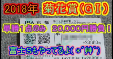【前日販売】菊花賞 単勝20,000円勝負してみました( *´艸`)スプリンターズステークスの動画もみてね☆彡https://youtu.be/kFqS…
