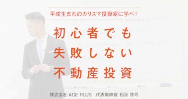 不動産投資コンサルティング事業を行う株式会社ACE PLUS代表取締役・松谷啓司氏による、初心者でも失敗しない不動産投資講座。第1回は「多くの初心者が不…