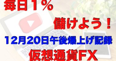 毎日1%でも儲けよう!仮想通貨FX2018年12月20日午後の記録(ビットコイン)になります。午後に一気に爆上げしましたので、その時の取引記録とエントリ…