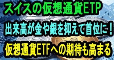スイス証券取引所SIXで仮想通貨ETPの出来高が金や銀を抑えて首位を記録、仮想通貨E…