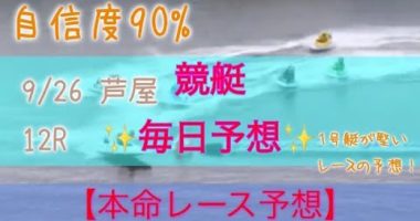 競艇予想 9/26 芦屋 12R 本命レース予想 自信度90%高評価、チャンネル登録お願いします!…