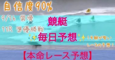 競艇予想 9/16 常滑 11R 本命レース 自信度90%高評価、チャンネル登録お願いします!…