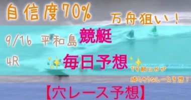 競艇予想 9/16 平和島 4R 自信度70%高評価、チャンネル登録お願いします!…