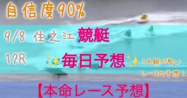 競艇予想 9/8 住之江 12R 高松宮記念 本命予想 自信度90%高評価、チャンネル登録お願いします!…