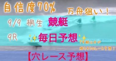 競艇予想 9/9 桐生 9R 穴予想 自信度70%高評価、チャンネル登録お願いします!…