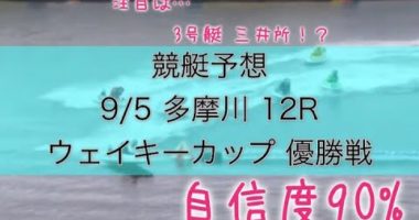 競艇予想 9/5 多摩川 12R ウェイキーカップ 優勝戦 予想 自信度90%